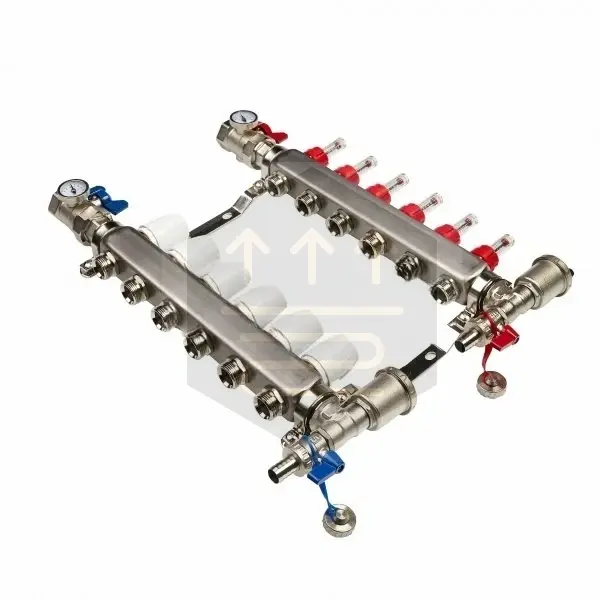 Nerezový rozvaděč pro podlahové vytápění s velmi citlivými regulačními průtokoměry, které zaručují vyrovnání průtoků u různě dlouhých okruhů. Vratné tělo je osazeno ventily s manuálními uzávěry, které lze následně zaměnit za elektrické pohony - ty následně komunikují s regulací (prostorovými termostaty). Jednoduchá a rychlá montáž (postačí jen ručně utáhnout) je zajištěna díky pryžovému těsnění na každém komponentu. Napojení jednotlivých smyček do rozdělovače je řešeno klasickým spojem ¾". Rozdělovač je dodáván včetně kulového uzávěru dle jeho zvolené varianty. Šířka rozdělovače je 80 cm.